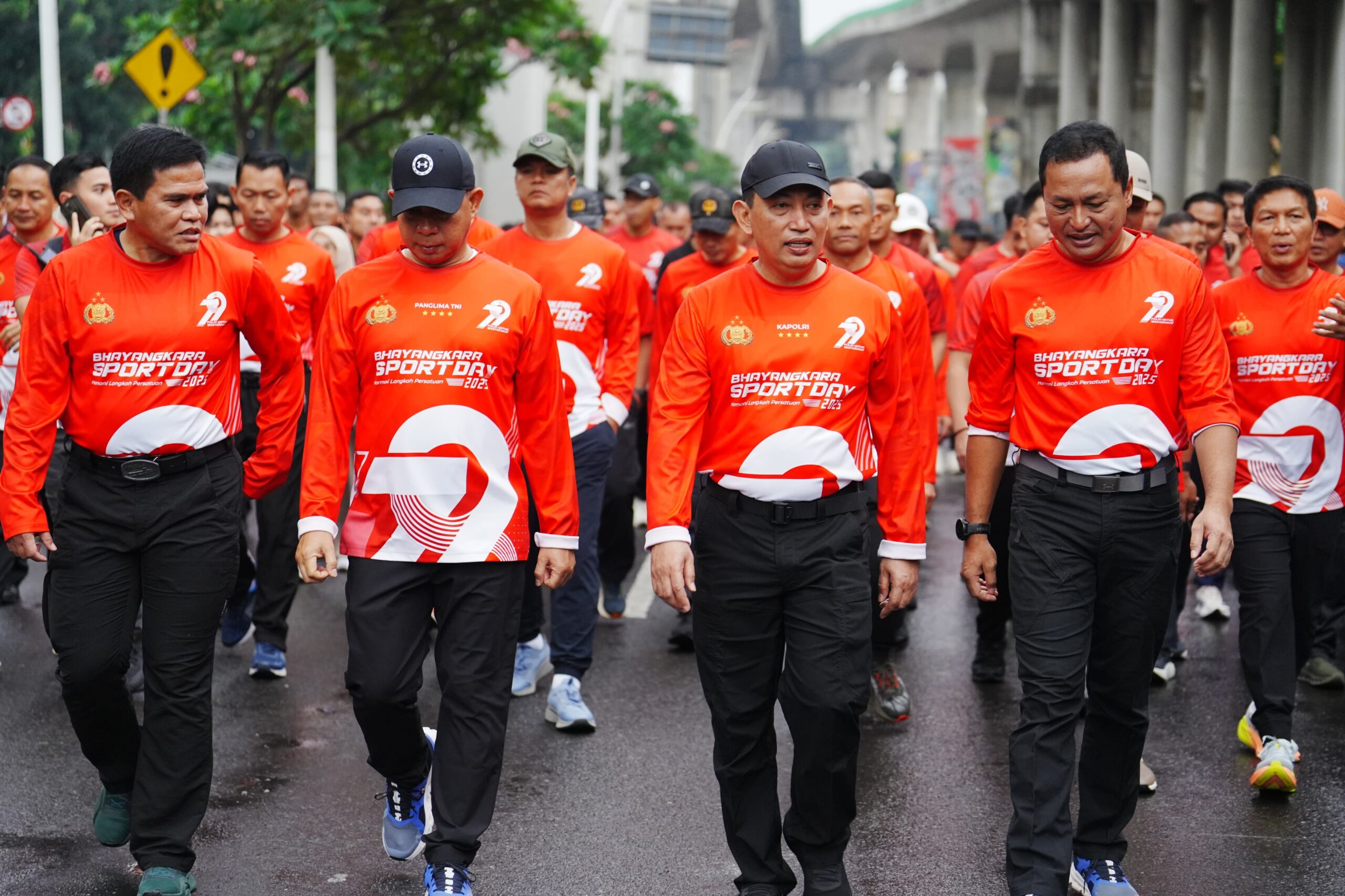 JAKARTA – Kapolri Jenderal Listyo Sigit Prabowo menghadiri kegiatan Bhayangkara Sport Day di Lapangan Bhayangkara Polri, Jakarta Selatan, Sabtu (21/6/2025). Acara ini di antaranya dihadiri oleh Panglima TNI Jenderal Agus Subiyanto dan Jaksa Agung ST Burhanuddin.