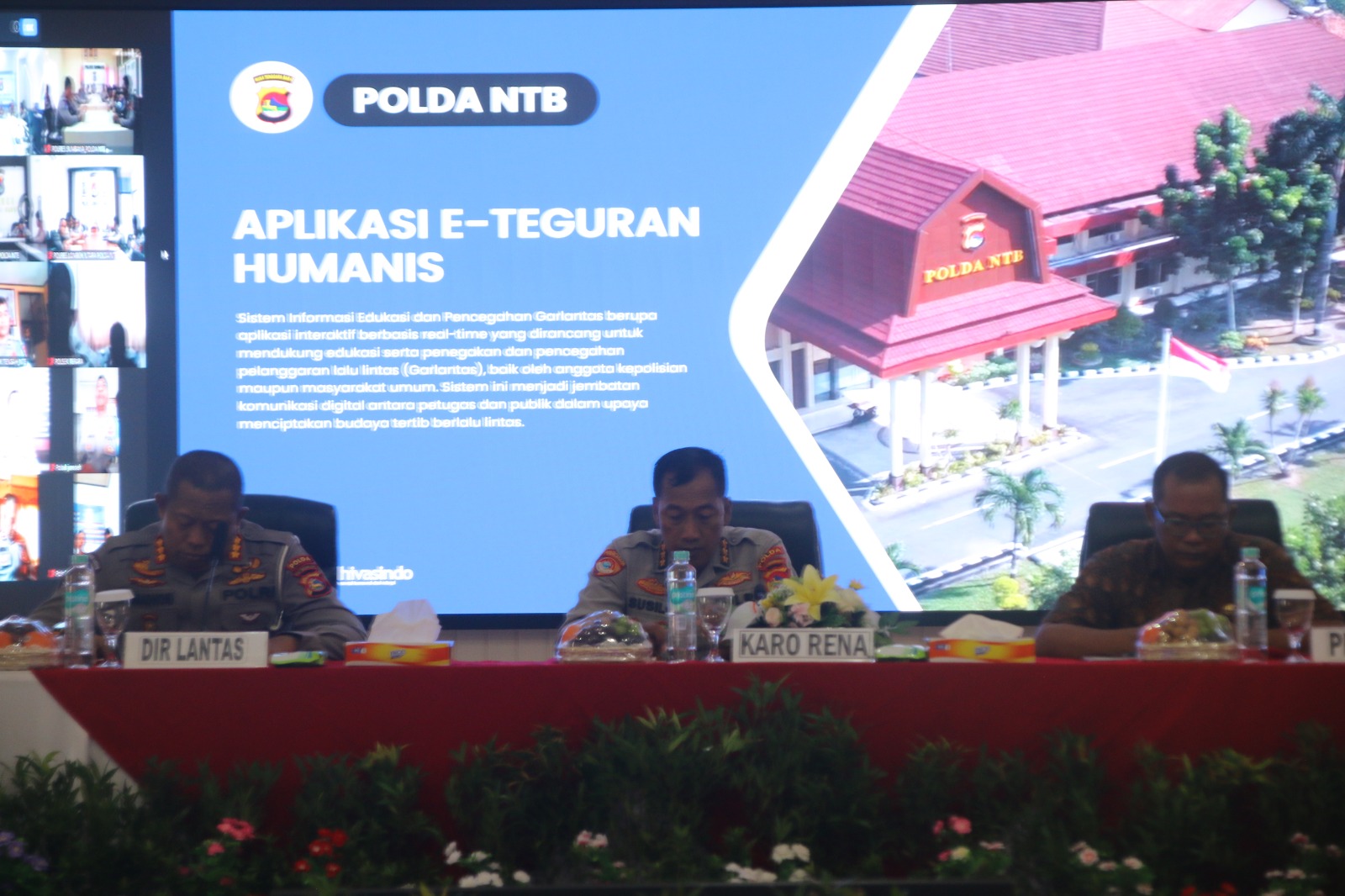 Mataram, NTB – Dalam rangka memaksimalkan peran Polri dalam meningkatkan pelayanan kepada masyarakat khususnya dalam bidang teknologi informasi, Kepolisian Daerah NTB melakukan terobosan baru dibidang teknologi dengan memperkenalkan aplikasi e-teguran humanis dan e-teguran disiplin.